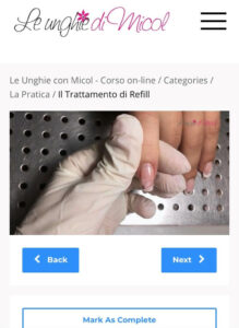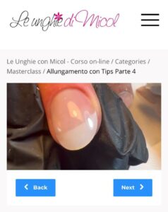 Nel caso del mio CORSO UNGHIE ONLINE avrai la mia assistenza diretta tramite chat uno a uno e potrò correggere i tuoi lavori ogni volta che ce ne sarà bisogno