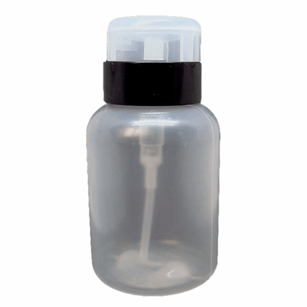 Contenitore in plastica con tappo a pompa. Utile per contenere e dosare liquidi cime il Cleaner, l’acetone o il remover.