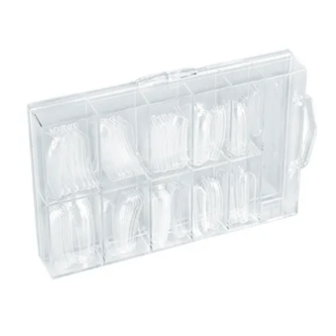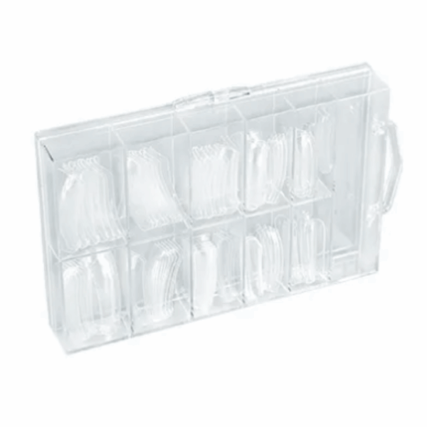 Supporti preformati in materiale plastico flessibile necessarie alla realizzazione di trattamenti di allungamento con Gel Acrilico. Box da 100 tip miste.