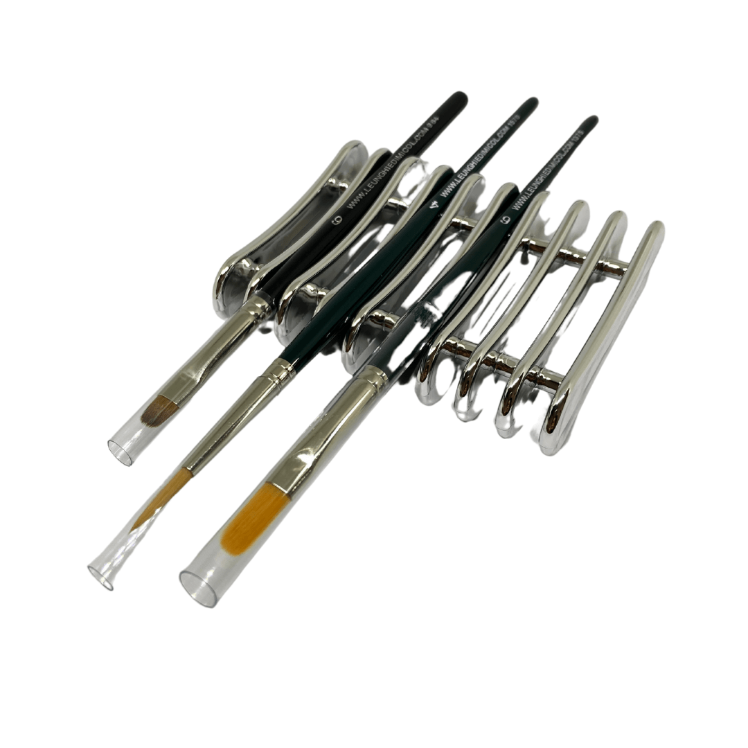 Porta pennelli da tavolo. Con questo semplice accessorio potrai disporre sul tuo tavolo da lavoro fino a 9 pennelli in modo da averli a portata di mano durante l’esecuzione dei tuoi trattamenti evitando i pennelli cadano, che le setole si rovinino o di sporcare la tua postazione di lavoro. Semplice e utile!