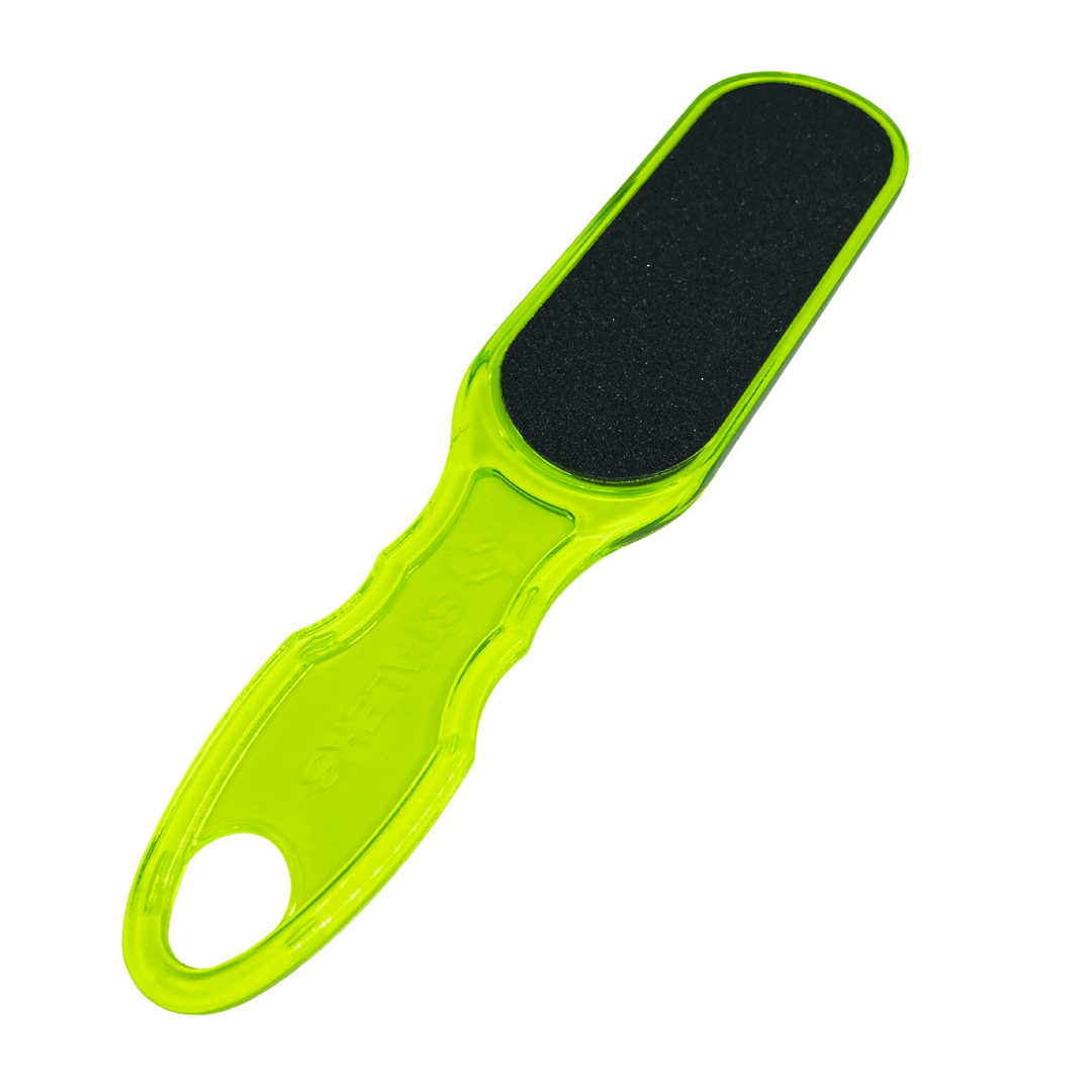 Raspa per pedicure ad alta abrasione. La forma concava facilita la cura del tallone, quella convessa la pianta del piede.